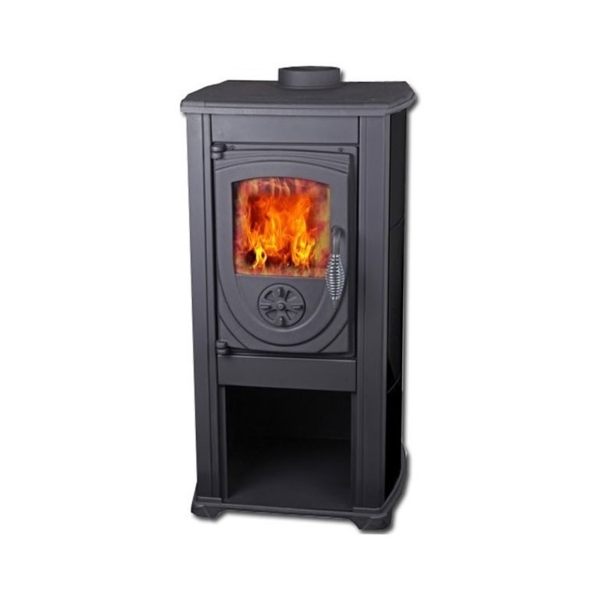 Teräs. Valurautaiset elementit - luukku ja peitelevy, tulisija vuorattu samottilevyllä.
