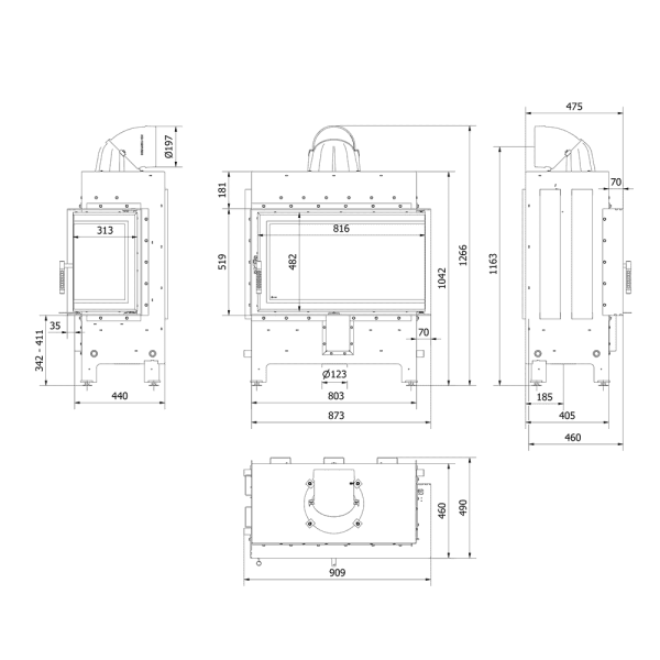 14kW, Kasutustegur - 81%. Vasak / parem, nominaalne võimsus on 6,0 - 17,0,0 kW. Klaasi suurus on 80,5 x 46,0 x 30,2cm. Energiaklass A. Suitsugaaside temperatuur väljaminekul 245°C. Puude pikkus - 40 cm. Tehasegarantii 5a