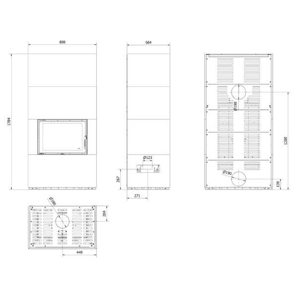 Õhuvõtuava - sisseehitatud, Ashpan, Põlemiskambri vooder, Dekoratiivklaas